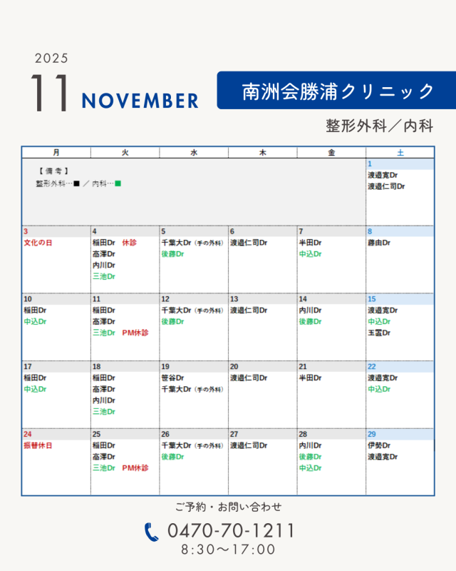11月の診療予定