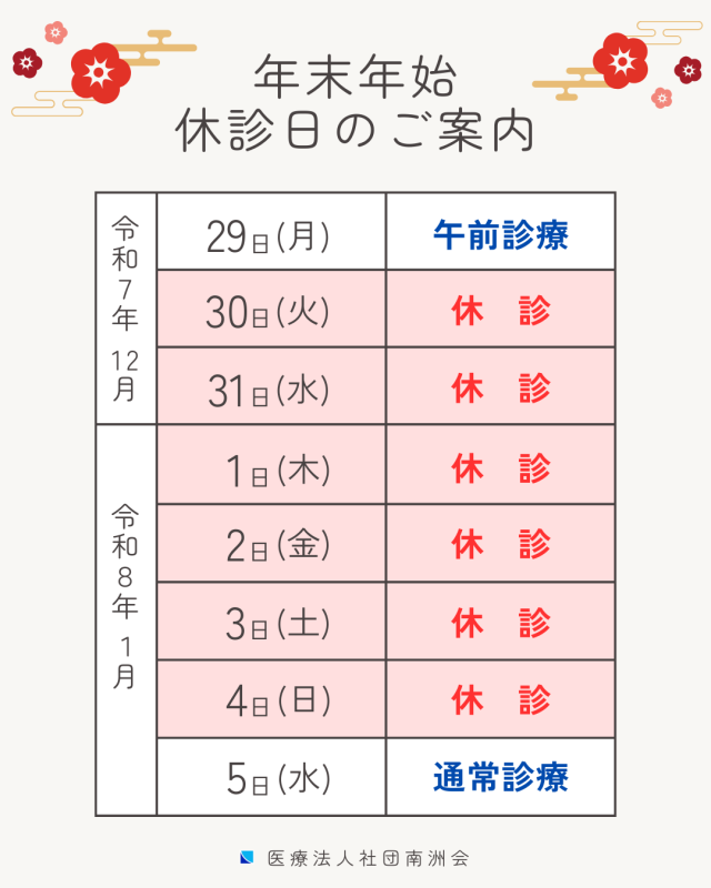 休診日 日曜・祝日・年末年始